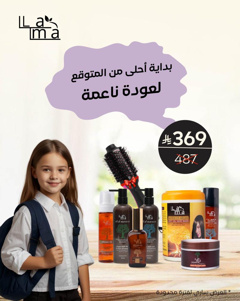 استغلي عروض العودة للمدارس واختاري مجموعة العناية بالشعر بزيت الأرغان من لما بيوتي، المصممة خصيصًا لتغذية الشعر الجاف، التالف، أو الكيرلي، ومنحه الترطيب والمرونة المطلوبة — مع هدية عملية ما تنفوّت!
